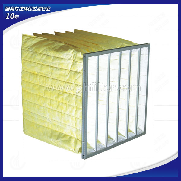 濾材內含靜電纖維,對次微米(大小1ū或小于1micron)粉塵過濾效率特別良好,具有高捕塵率,高粉塵載量及高透氣性,高使用壽命每個濾袋間以金屬條固定,增加濾網強度,防止濾袋于高風速時,因風力之摩擦力而破裂,濾袋均有六道內襯,防止濾袋隨風壓過度膨脹,相互遮蔽而降低有效過濾面積與效率,濾袋邊均采用熱熔方式,過濾器具有良好的氣密性及結合強度,不產生漏氣或破裂;容塵量大、高效率、低壓損;